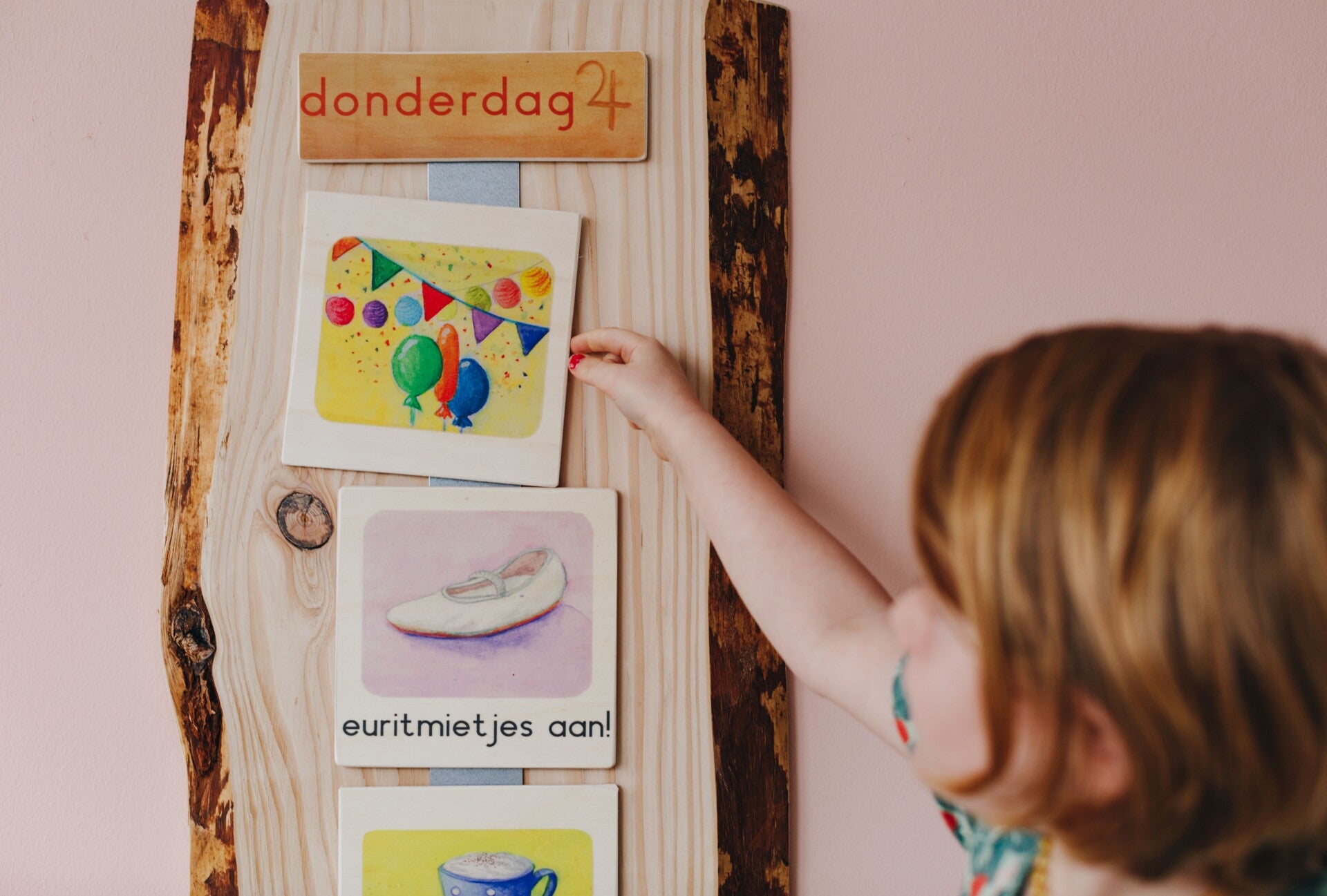 De dagen van de week zijn verbonden met ons planetenstelsel. De kleuren zijn hierop afgestemd en er zijn varianten te bestellen met de planeettekens erbij geillustreerd. Ook nog erg leerzaam dus.